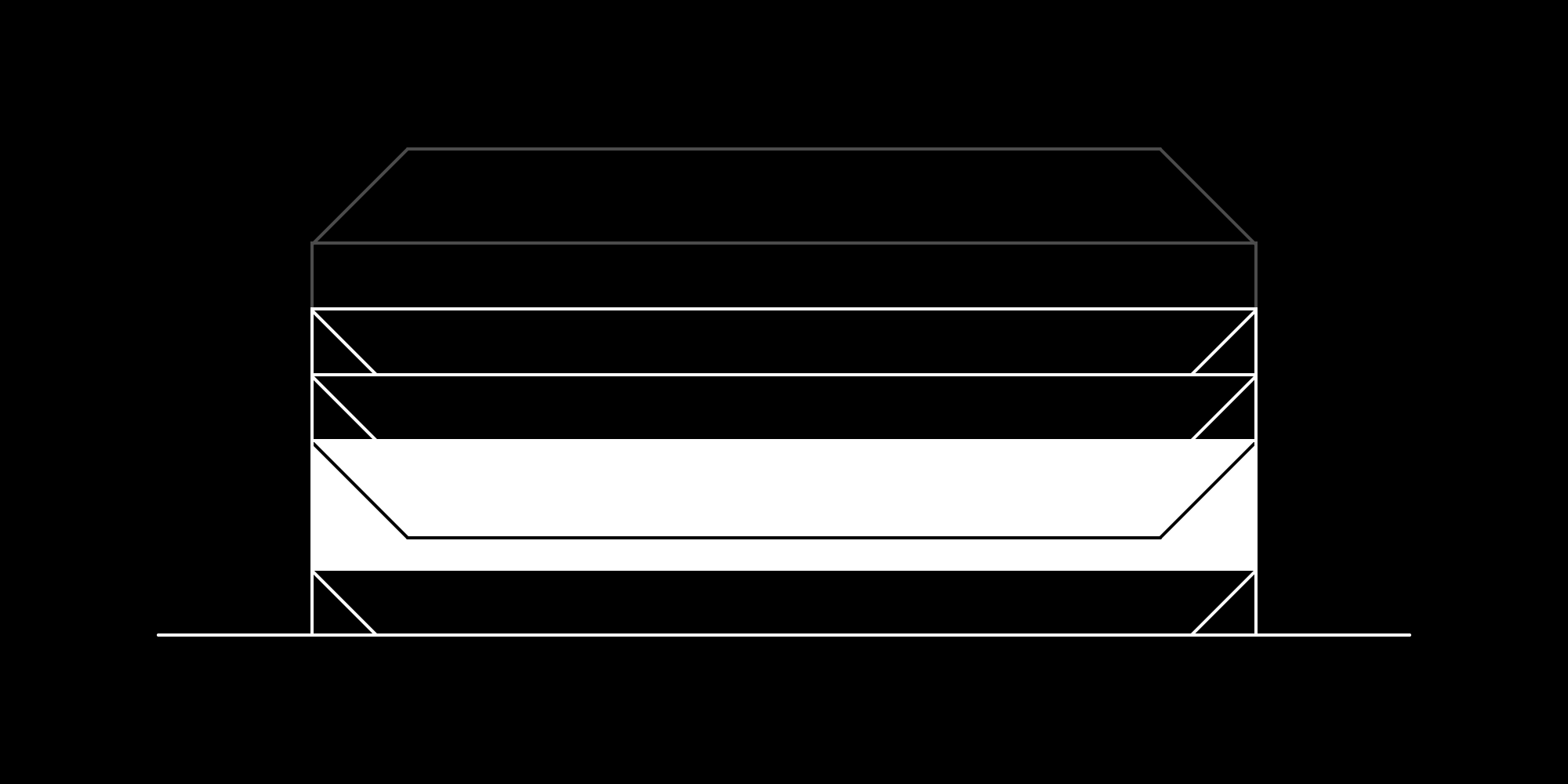 Then, I started to create a visual similar to stack of envelopes—when you open it the lid will flip upwards. This visual and interaction is key to the project and I wanted to create it entirely using HTML and CSS, rather than using images. So I created 5 envelope outlines that stack on top of each other, each with a sealed lid. When the user’s cursor hovers on each envelope, it will pop up a little and switch from just a white outline to a white fill. And envelops that are opened will turn gray and have the lid flipped upwards.