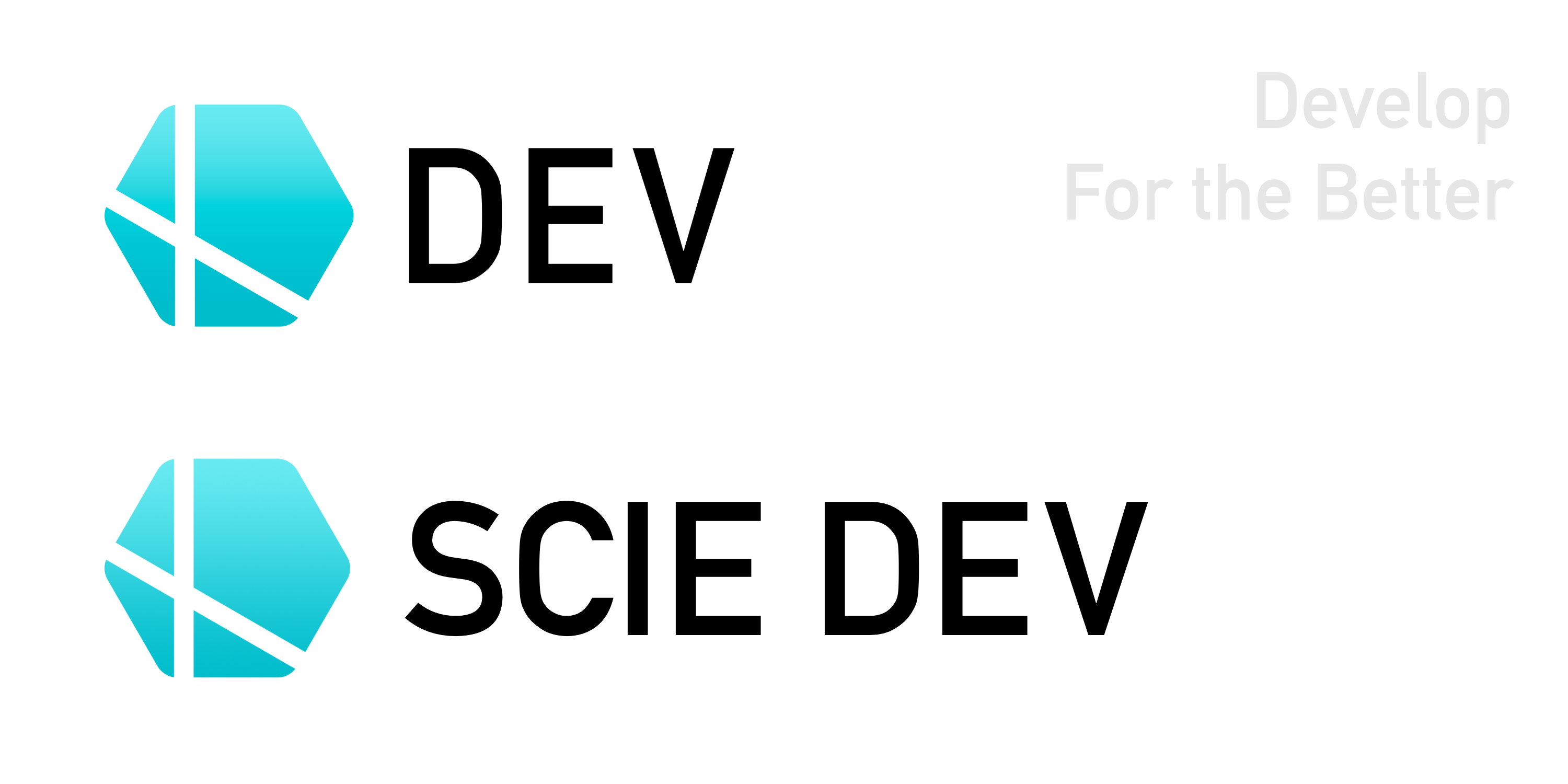 This logo is for our own club. After several iterations it became its final form, as shown below. The hexagonal and triangular shape represents stability, especially for the software we develop. And the text can either be our full name ("SCIE DEV") or just "DEV" depending on the use case.